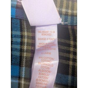 Savage × Fenty Tied Up Tartan PJ Raw Hem Button Down Sleep Shirt XL -NEW-
