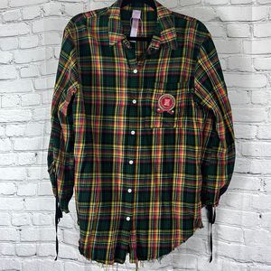 Savage Fenty plaid button-up shirt top raw hem size medium