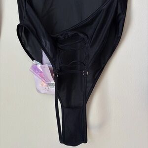 Savage Not Sorry Long Sleeve Open Back Glissenette Teddy Medium Black NEW NWT