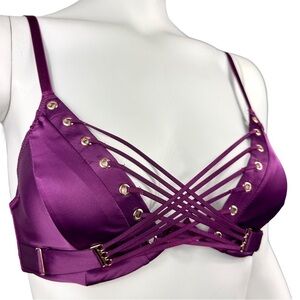 Savage Satin Lace Front Adjustable Bra in Purple Size 32B