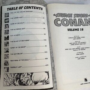 The product is a single unit trade paperback comic book titled "Savage Sword of Conan Dixon Kwapisz Conway Volume 16 1st Ed" published by Dark Horse Comics in 2014. It features Conan the Barbarian as the main character within the US Comics tradition. The comic book is a part of the series "Savage Sword of Conan" and showcases artwork by Earl Norem. The story is targeted towards a general audience, with an action-packed plot that falls under the genres of adventure, fantasy, and historical & mythological themes. This first edition volume is in English and is a must-have for fans of the legendary hero Conan the Barbarian.