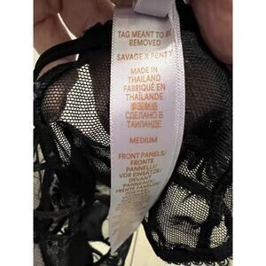Savage X Fenti Black Mesh Floral Embroidered Polka Dot High Leg Bikini Panties M.