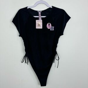 Savage X Fenty 70s Ruched Terry Thong Teddy Bodysuit Black Size XL NWT