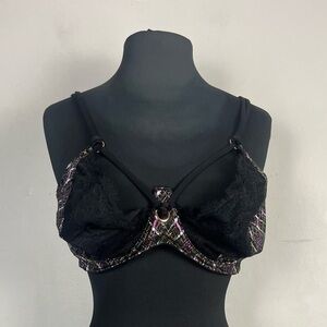 Savage X Fenty A Little Tart Unlined Bra purple black green plaid size 38H