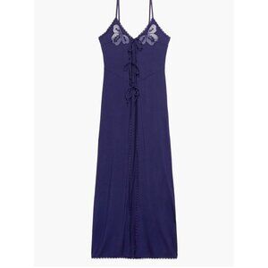Indulge in a luxurious night's sleep with this Savage X Fenty A Peek Behind the Lace Maxi Slip in navy blue. This slip is perfect for plus size women and features a solid pattern, making it a versatile addition to any sleepwear collection.