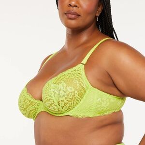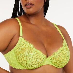 Savage X Fenty Alien Animal Unlined Lace Plunge Bra Twisted Lime Green 38DD Nwt