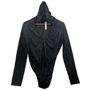 Savage X Fenty Black Lace Y2K Hooded Gothic Streetwear Bodysuit - Size Large