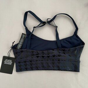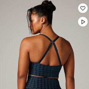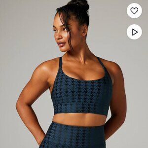Stylish sports bra with houndstooth pattern. Adjustable straps for comfort. Perfect for workouts.