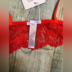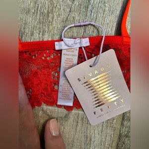 Savage X Fenty Bralette Size S Red Mesh Lace X Logo Front Closure NEW