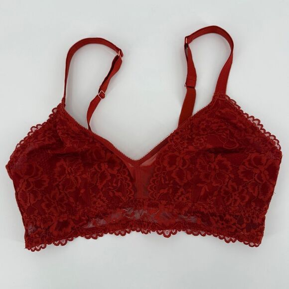 Elevate your lingerie drawer with the striking red lace bralette from Savage X Fenty. A bold blend of comfort and style designed for inclusivity and confidence. Floral lace all over the cups and longline band. Sheer mesh panels for a flirty yet elegant look. Adjustable straps to fine-tune your fit. Wireless construction for soft support and relaxed comfort.