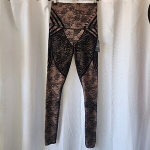 Trendy activewear leggings featuring a black velvet and tan pattern. Perfect for workouts or casual wear. NWT