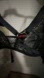 Black unlined bralette featuring 'Love' lace fabric and a flirty 'Lover' charm at center back. Lace cups with dotted mesh inserts. Elastic straps at side of cups. Adjustable shoulder and back straps with rose gold tone hardware. Body: 82% Polyamide, 18% Elastane; Lining: 100% Polyamide; Cup: 85% Polyamide, 15% Elastane. New with tags. Bundle and save!