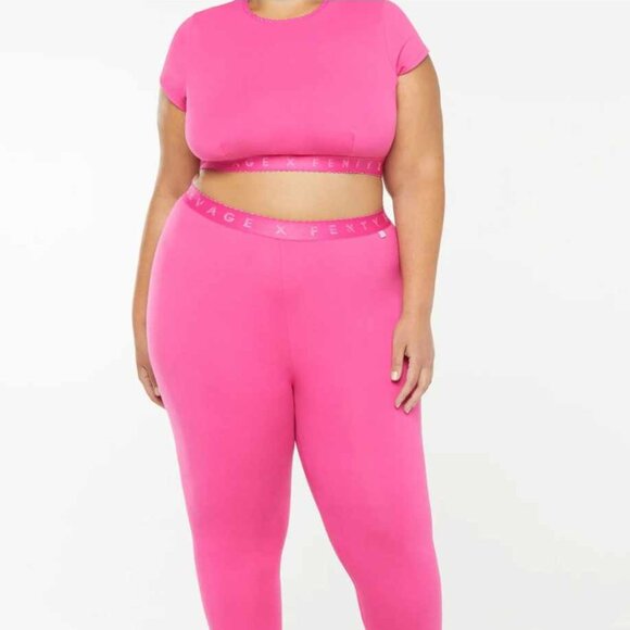 This Savage X Fenty sleep set features a cotton short sleeve crop shirt and leggings. The shirt and leggings are size 3x. Very comfortable material.