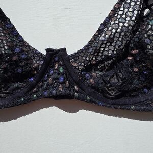 Savage X Fenty Disco Night Iridescent Lace Up, unlined Black Bra US 36B
