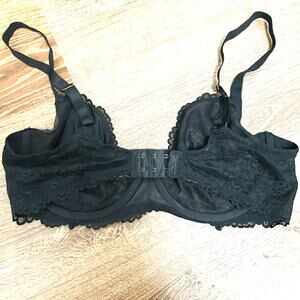 EUC is a black lace unlined bra by Savage XFenty. Made from sheer, delicate lace, the Floral Lace Unlined Bra features a classic silhouette and rose gold tone hardware.