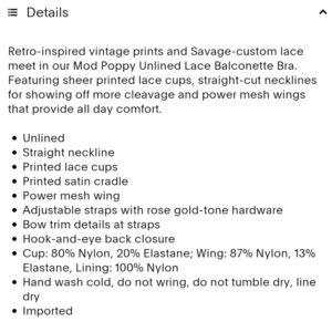 Poppy Unlined Lace Balconette Bra. Sheer printed lace cups, straight-cut necklines for showing off more cleavage and power mesh wings that provide all day comfort.