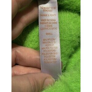Get cozy in this bold Savage x Fenty fuzzy green lounge one-piece bodysuit jumpsuit.