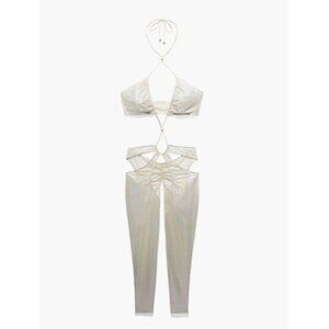 Inspired by the iconic gowns of the '70s, this fashion lingerie must-have is an update to a catsuit silhouette. Our Gathered Mesh Crotchless Catsuit features sexy cutouts with satin drawstring ties that wrap around the curves of your body.