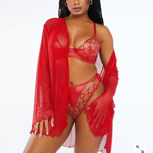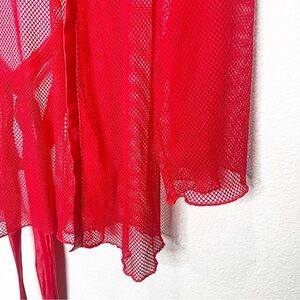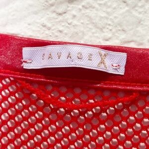 Savage X Fenty Glossy Flossy Fishnet Robe Goji Berry Red