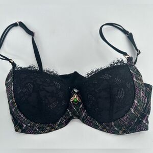 Savage X Fenty Lace Black & Metallic Bras With Green-Gold Bee