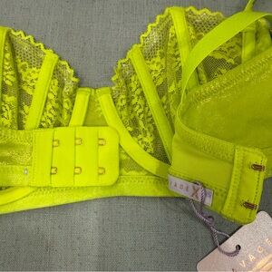 Experience comfort and style with this vibrant green lace underwire bra. Perfect for adding a pop of color to your intimates collection.
