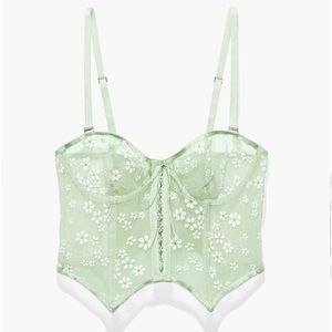 Savage X Fenty Mint Hint Green Puff Daisy Unlined Bustier Set with Bikini Panty