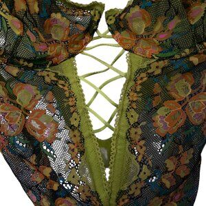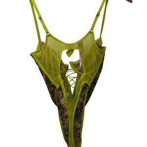 Savage X Fenty Neon Lime Floral Lace Mesh Bodysuit / Teddy – Size Medium (Tag Me