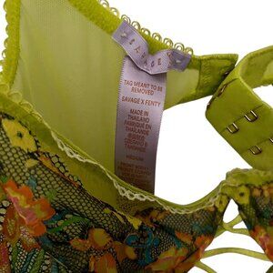 Elevate your lingerie collection with this Savage X Fenty neon lime floral lace mesh bodysuit (or teddy). This striking one-piece piece features intricate lace and mesh detail, adjustable straps and hardware, and a sultry cut‑out back design. It’s a showstopper that blends delicate elegance with bold color.