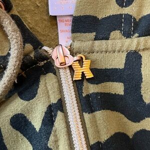 Get ready for the cold-weather season with this Savage X Fenty Hooded Onesie Pajamas (Style RN157929, Size XS). Designed in a chic olive green with bold black logo lettering and a pink zipper accent, this loungewear piece blends cozy comfort with Rihanna’s signature streetwear edge.
