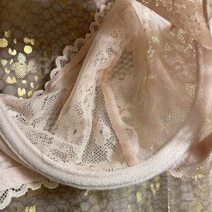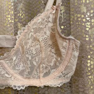 Excellent condition. No flaws or signs of wear. Smoke and pet free home. Size 32C. Pretty peach lace color, no padding. Cute romantic bow accents.
