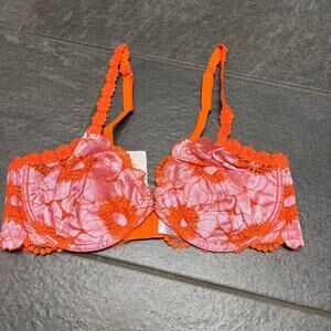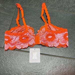 Savage X Fenty Perfect Poppies Unlined Lace Demi Bra 38D Pink Orange Romantic