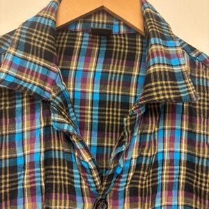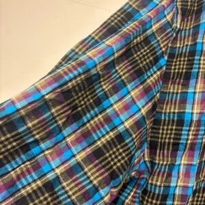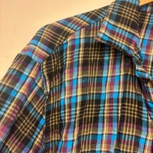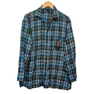 Great Savage X Fenty Plaid Sleep Pajama Top. Super soft. Emblem chest. Raw hem. Missing size and material tag. See measurements.