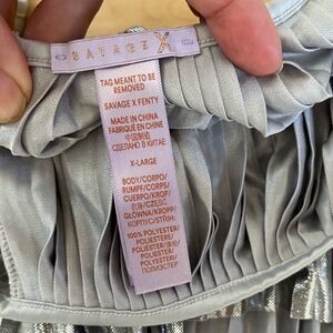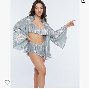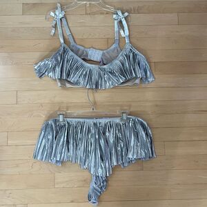 Savage X Fenty Pleated Lamé Short and Unlined Pleated Bra in Spaced Out Metallic Silver XL and 40DD NWOT