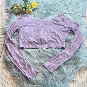 Savage X Fenty Pointelle Lavender Long Sleeve Crop Top. This top is in great used condition