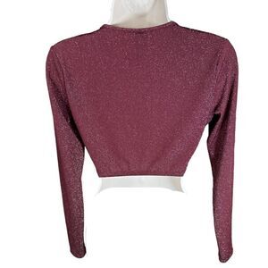 Savage X Fenty Red Burgundy Shimmer Sleep & Shine Long-Sleeve Cropped Top