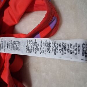 Vibrant red top with purple accents. Stylish and bold design. Perfect for any occasion.