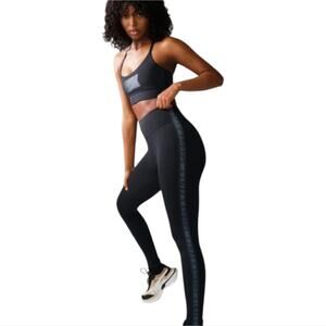 Stylish black leggings with side branding. Perfect for workouts or casual wear.