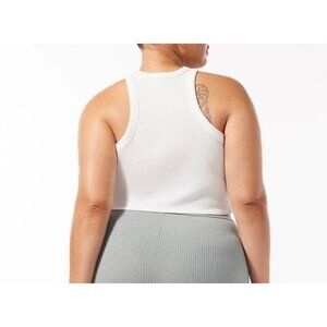 Savage X Fenty Ribbed Crop Tank Top High Neck Front Logo Print White Sz 1X