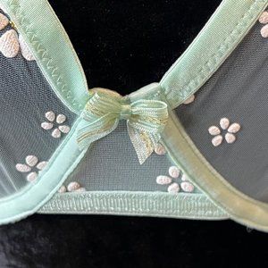 Savage X Fenty Rihanna Mint Green Puff Daisy Womens Bra 34DD Lingerie Undergarme
