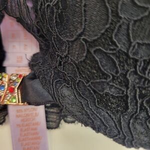 Black floral lace underwire pushup bra with multicolored faux gemstone front closure. Size 30c Rhiannas brand.