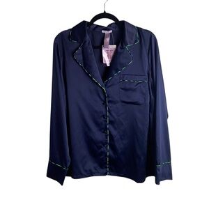Savage X Fenty Size 1X Pajama Set Navy Blue Button Down Shirt Silky