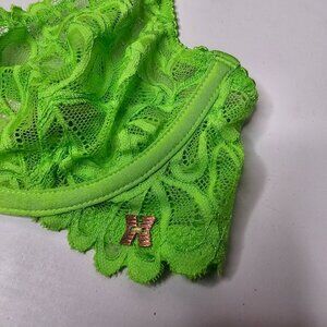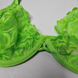 Savage X Fenty Size 34C Neon Green Bra Scalloped Lace Unlined Sheer Underwire