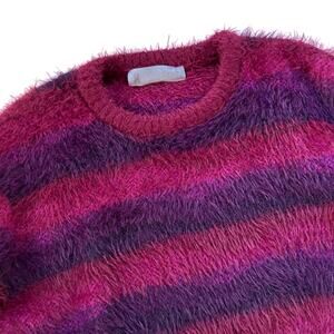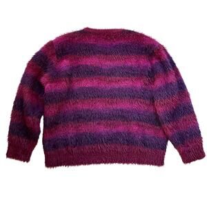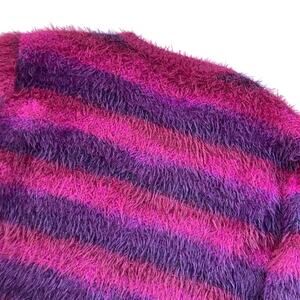 Savage X Fenty Soft Fuzzy Knit Striped Crew Neck Sweater Large Whimsygoth Purple