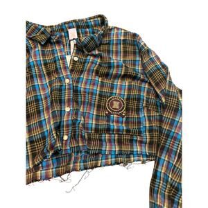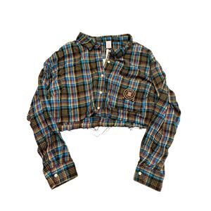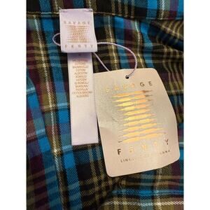 Savage X Fenty Tied Up Tartan Cropped Raw Hem Open Back Pajama Set 1X Plaid NWT