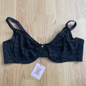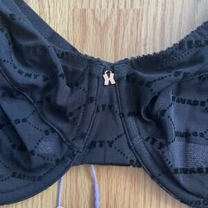 New with tags unlined demi bra from Savage X Fenty, size 44DDD. This unlined bra is made from their flocked logo fabric and features a rose gold tone X charm at center front. Features: