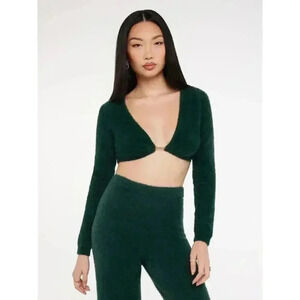 Savage X Fenty Women’s Size Large Fluff It Up Mohair PJ Crop Top Botanical Green