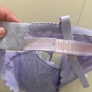 Savage X Fenty Savage Not Sorry Lightly Lined Lace Balconette Bra in purple lavender, size 36C. Fair condition.