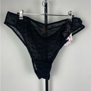 Savage X Fenty by Rihanna Black Sheer Shimmer Flocked Logo Brazilian Underwear