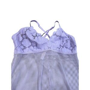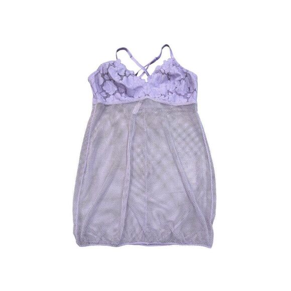 Savage X Fenty, Women's Slip, Floral Glow Lace, Mesh Slip, Size 2X, Purple Slip, Adjustable Straps, Unlined Lingerie, Stretch Lace Cups, Fishnet Mesh, Pull On Slip, X Back Design, Rose Gold Hardware