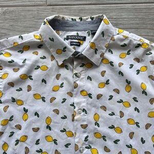 Savage by Perry Ellis Lemon short sleeve button down Stretch shirt size Large